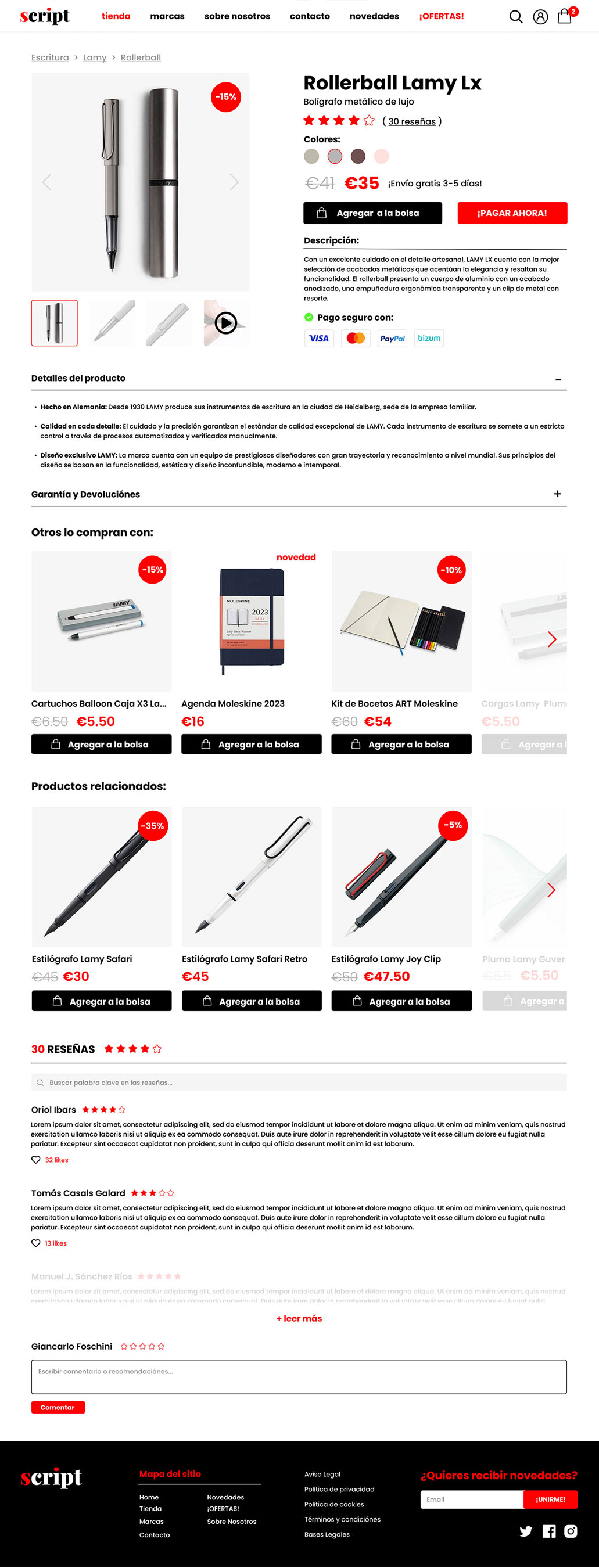 A concept product page for an e-commerce which sells high quality pens and notepads. I was given a brief for a job offer asking to design an interface for two different user persona, both very dedicated to work and studies.